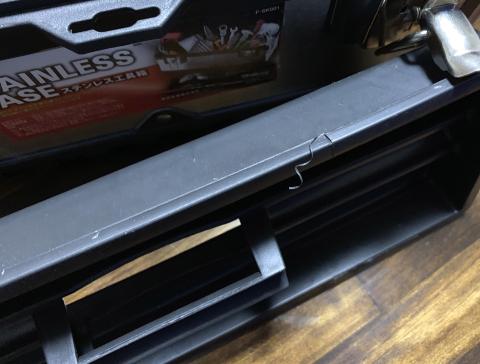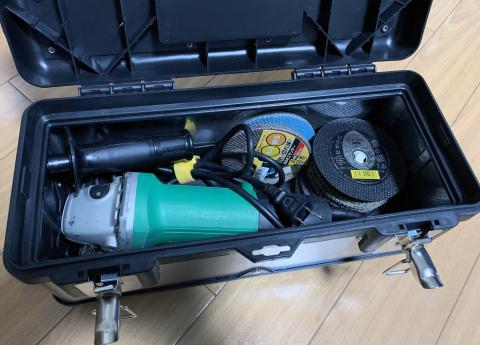 ホームセンターの工具箱コーナーにてグラインダーを持って歩いている不審者になってしまいましたが、大きさ的にいけそうなのがあったので買ってみました