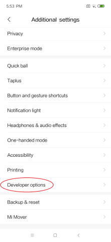 MIUI versionを連打するとデベロッパーオプションが有効化されます。