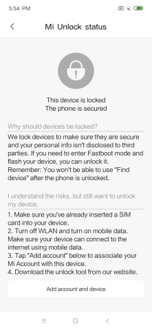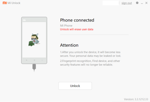 届いたMi 9はロックがかかっているので、そのままでは書き換えが出来ません。