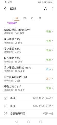 睡眠の質をめっちゃ細かく採点されます(^^;