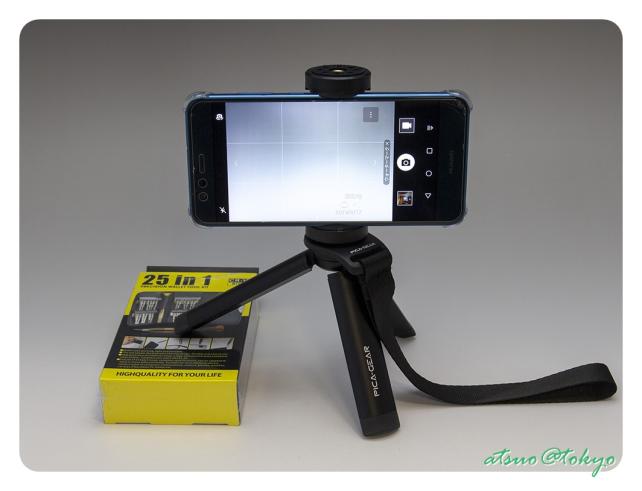 今回はスマホメインで利用しているところの画だけですが、ホルダーの上部や背面に GoPro等のアクションカメラを装着しスマホから操作したりといろいろ使いでのあるスマホホルダー&ミニ三脚です。
