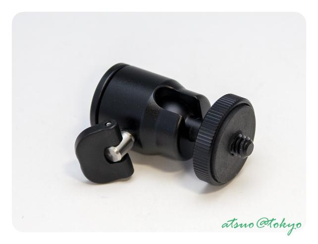 小ぶりの自由雲台で底面直径が実測23mmです。