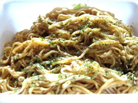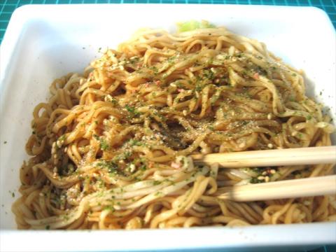 ベイシアで見つけたので購入しました インスタント焼き蕎麦で金粉入りとは何ですかね