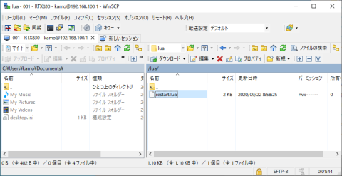luaスクリプトを入れ込んで定期実行可能なのですが、そのluaについて色々と試行錯誤でトライしていたら、WinSCPのSFTP経由でファイルを送受信出来てしまった。