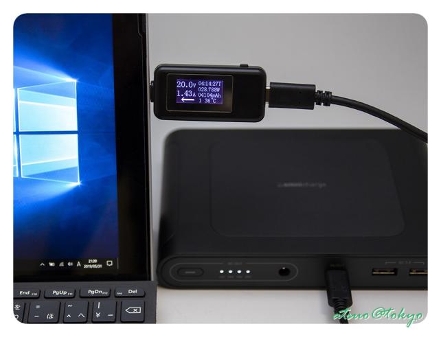 もっとも Omnichargeのレビューで調べた時に、Surface Goでは USB Type-Cからの供給は 15 ワット以上推奨とあったので、充電自体は問題ありません。