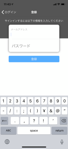 iPhoneのアプリを立ち上げ、新規アカウントの作成をタップします
