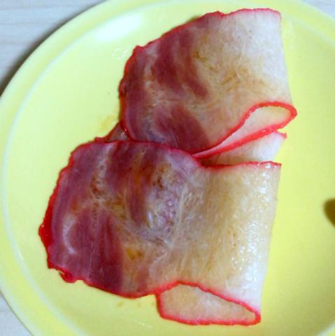 アイスランド産のナガスクジラのベーコンのスライスです。