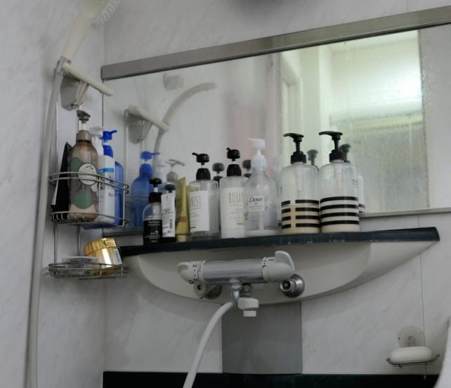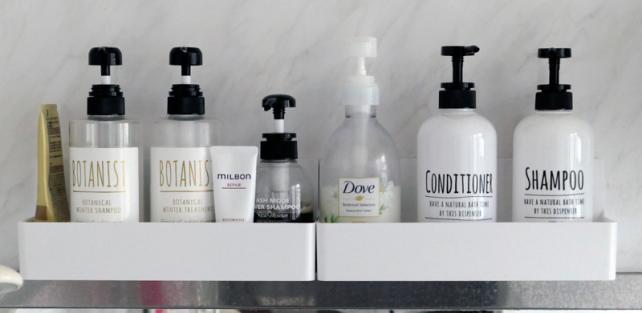 元々6本程度のボトルを置く金属製ハンガーを使っていたのですが、そこから溢れ、鏡の前の小さな棚に並べられるようになり、鏡が見にくく、小さな棚にこぼれたシャンプーやトリートメントを洗い流したり、棚面が濡れて乾燥しにくかったりと不便を感じていました。