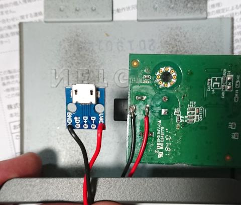 この製品の電源が5V / 0.7Aでの駆動のため、USBからの給電動作への改造を施します。