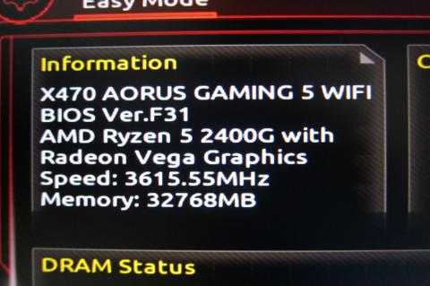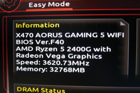 まず,CPUとしてRyzen 5 2400Gを取り付けて,BIOSがF31以下の場合にはF31まで上げます.今回の板はF40になっていましたので,一旦F31まで下げました.