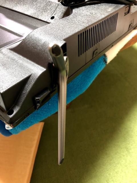 テレビの足が左右に広がっているので、少し高さのある所に置いたほうが作業しやすいです。