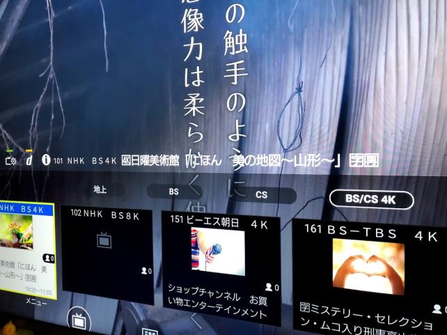 4KがきれいでNHKみています。選局が多くなって満足だと言っていました。