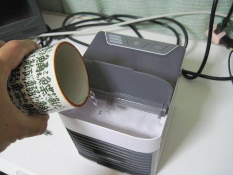 水はフィルターを循環しているので、ファンで風を当てると気化熱が奪われ、冷たい空気となって吹き出してくるという仕組みです。
