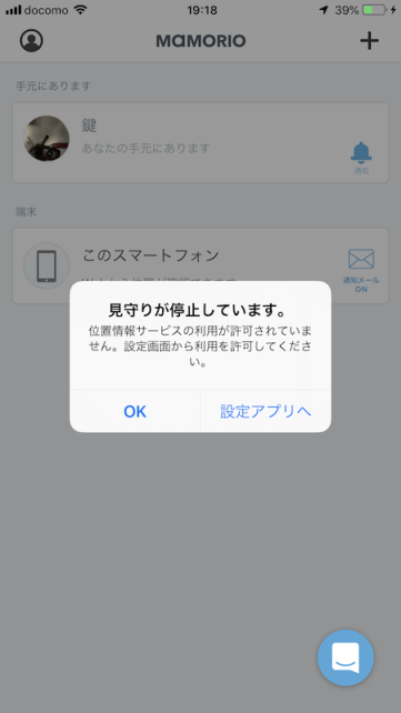 スマホからMAMORIOが離れるとアラートが出ます
