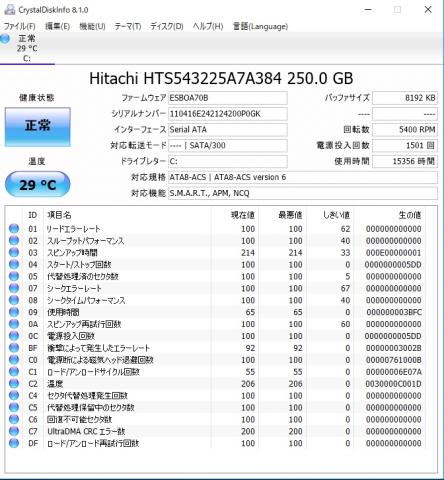 古い割にはHDDの状態は良いほうだと思われます。