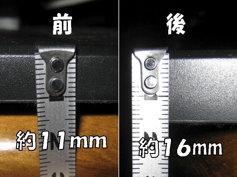 2枚目はスタンドベースの厚さです、フロント側が約11ミリ、リア側が16ミリです。