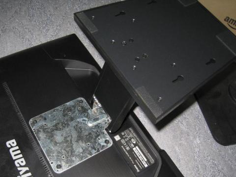 今回はVESA100*100mmのネジ穴を合わせ固定しました。