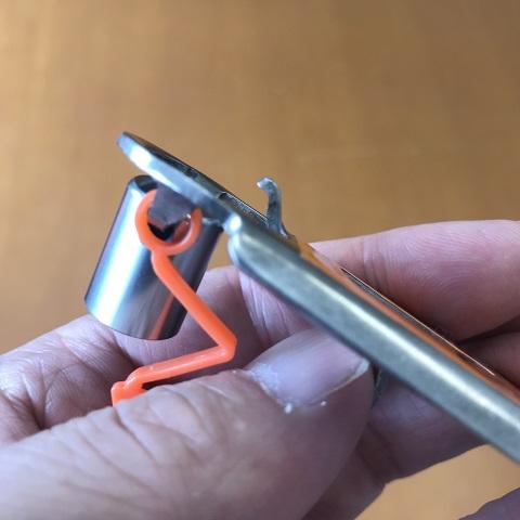 ③カートリッジにしっかり装着できれば、爪の保護カバーを外しカートリッジに押し込めばポッカリ穴があきます。