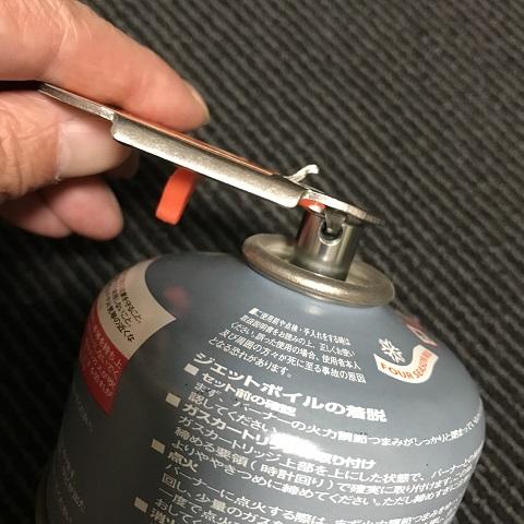 本来はガスが残らない様に火が消えるまで使い切るのが理想ですが、ガスが残っていても装着するのと同時に安全に残圧を抜く事が出来ます。