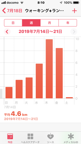 iPhoneのヘルスケアだとこれぐらい。誤差は多分仕事時はIngress起動させてないからです(当たり前だ)
