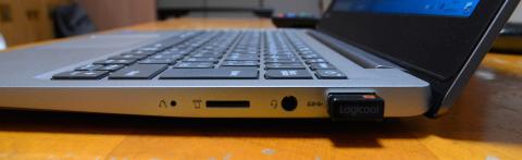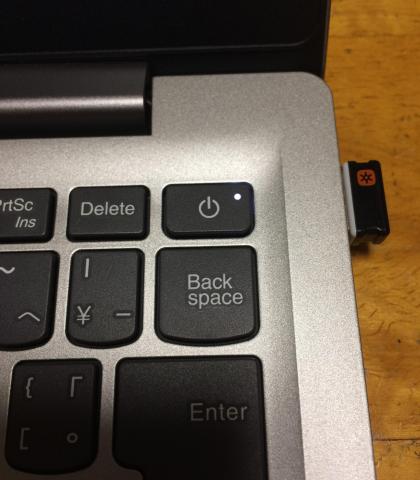 パソコン右サイドはUSB3.0ポート、マイクロフォンジャック、microSDメディアカードリーダーがあります。私の場合は右側にワイヤレスマウスのレシーバーをつけっぱなしにしています。ちなみに使用してるマウスは、