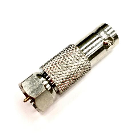 上の画像では、手前が「Fオス」で反対側が「BNCメス」になっている変換コネクターです。