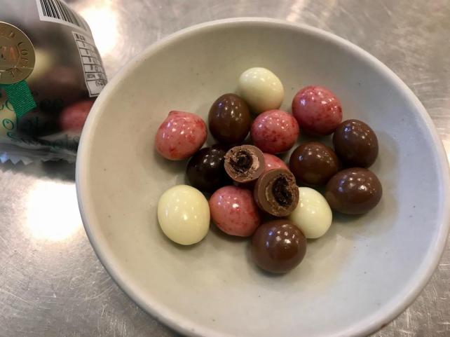 甘めのチョコボール でも酸味もあるな お!コリッと食感が変わる
