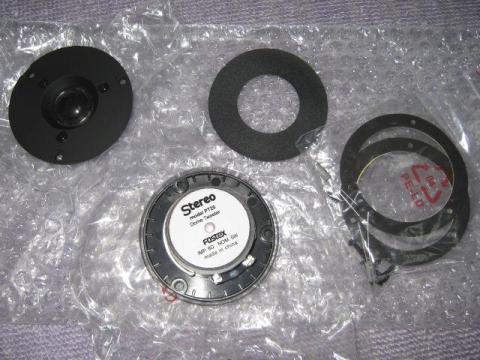 ツイーターにmodel PT20 x 2、パッキン x 2、ネジ6本、1uF50Vのコンデンサ