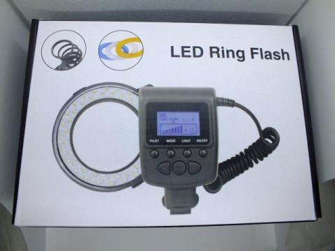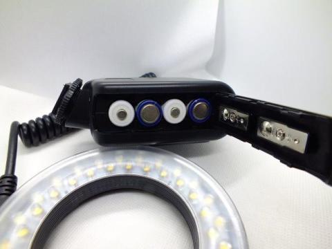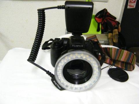 カメラのレンズに装着する、LEDが光源のリングフラッシュです。