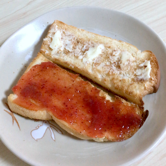 そして、半分にジャム、もう半分にバターを塗るのが「お気に入り」。