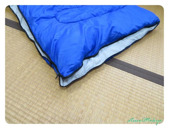 ちなみに寝袋を使った事が無い人のために補足しますと、ファスナーには内と外の両方につまみが付いており、中に入っていても簡単に開け/閉じ出来るようになっています。