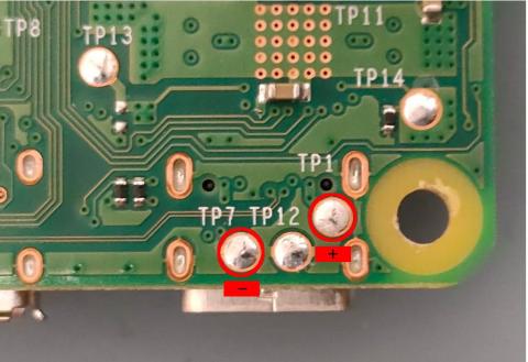 テスターで調べたところ、赤丸で囲った場所にハンダ付けすれば Type C 接続時に電源がとれる。