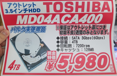 アウトレットとはいえ,新品4TBとしては安いですよね.