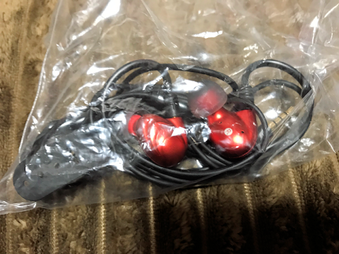 ここは一般入場で入った方が殺到していて、めぼしいものは概ね売り切れてしまったのですが、最後の方に残っていたジャンク品の一つがこのイヤフォン、FiiO F9でした。装着済みイヤピースとリモコンケーブル以外の付属品はありませんでしたが、何となくで買える程度の金額だったのでこれも入手してきました。