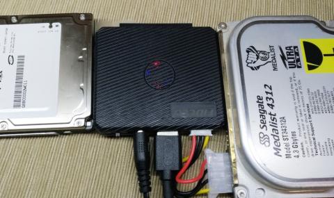 写真から左に2.5インチHDD、右に3.5インチHDDを接続しています。最大2ドライブまで同時接続可能で、Windowsからはそれぞれ違うドライブとして認識されます。