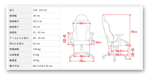 キャスター底部から座面下部まで図のように35cm~42cmとなっています。この高さはDxでは約37cm~約44cm単に2cmも低いことになります。個人的にはこの座面の低さは気に入りました。