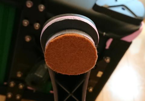 後からキャスターを付けられるようフェルトシートに穴あけしました。