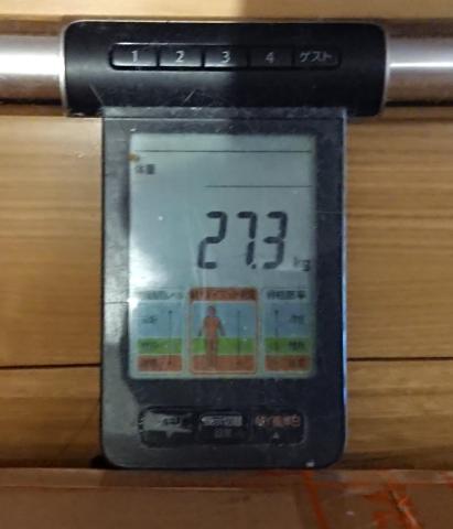 これを2階のリビングへ持っていくわけですが、その前に重さを体重計で測ってみました。