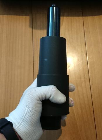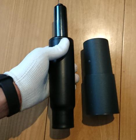 ガスシリンダーにカバーをかぶせてシリンダー固定台の穴に差し込む