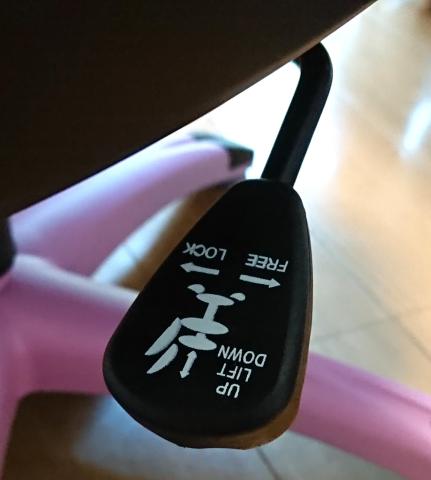 また、座部のシリンダー固定台にある高さ調節レバーを内側に押し込むことでロッキング機能を固定出来ます。外側に引っ張ると解除されます。