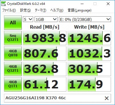 この後データを一気にSATASSDから移動したが…まあSATASSD同士のコピーくらいの感じ。今回はX370環境にてゲームクライアントのインストールドライブとして使用。