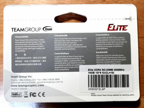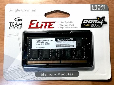 今回購入したのはTeam の ELITE SO-DIMM DDR4 16GB 1枚。