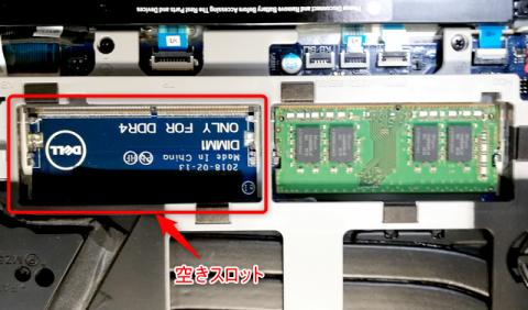 メモリスロットは2つありますが、1つは初期メモリで埋まっています。