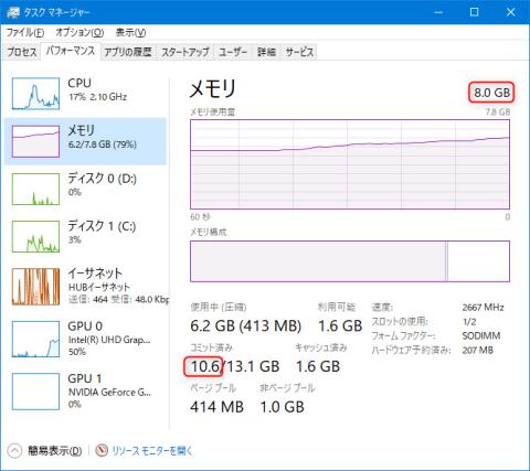 いくつかソフトを起動した時点で使用メモリが物理メモリを超えてると言う……