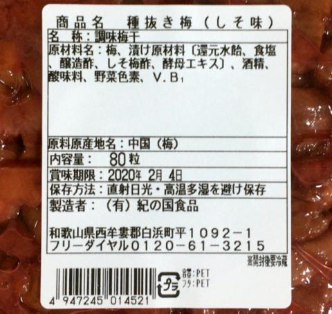食べやすい【種抜き梅】しそ味80粒 です。