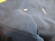 糸が1本程度長く出ているなら、縫い針にその大きく飛び出ている糸を通し、裏側へ刺してやります。