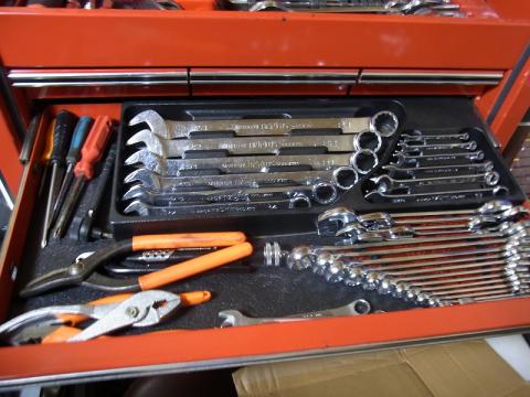 最上段はラチェット類とサイズのでかいレンチをしまいました