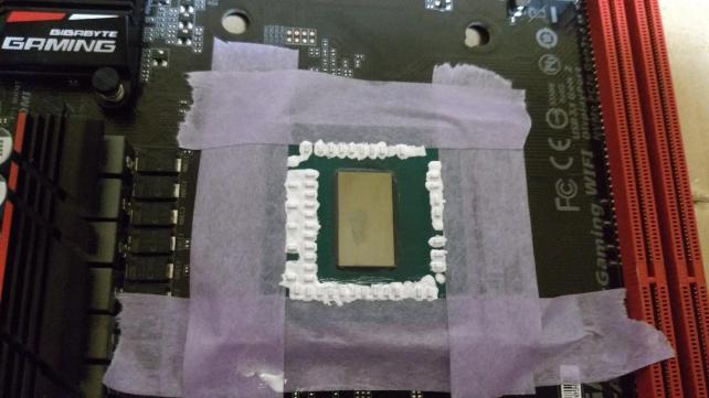 とりあえず、こんな感じでヒートスプレッダを引っ剥がし、CPUのダイに直接塗布してやる。