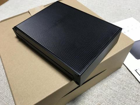 HDD本体です。表面が細かくブロック状に加工されていますが、これはヒートシンク効果を狙った形状とのことです。とはいえ、TVのような大型家電接続用のHDDで、理想的なエアフローが得られる可能性はあまり高くはない気もします。
