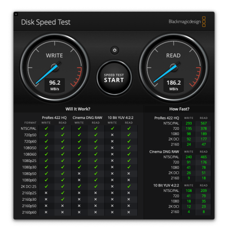 Mac Read:186MB/s、Write:96MB/s